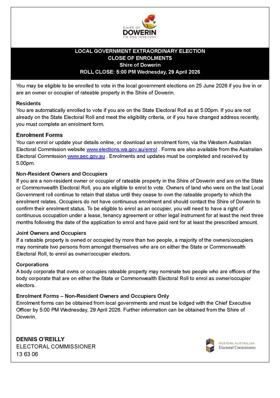 2026 Extraordinary Local Government Election – Owners and Occupiers Roll